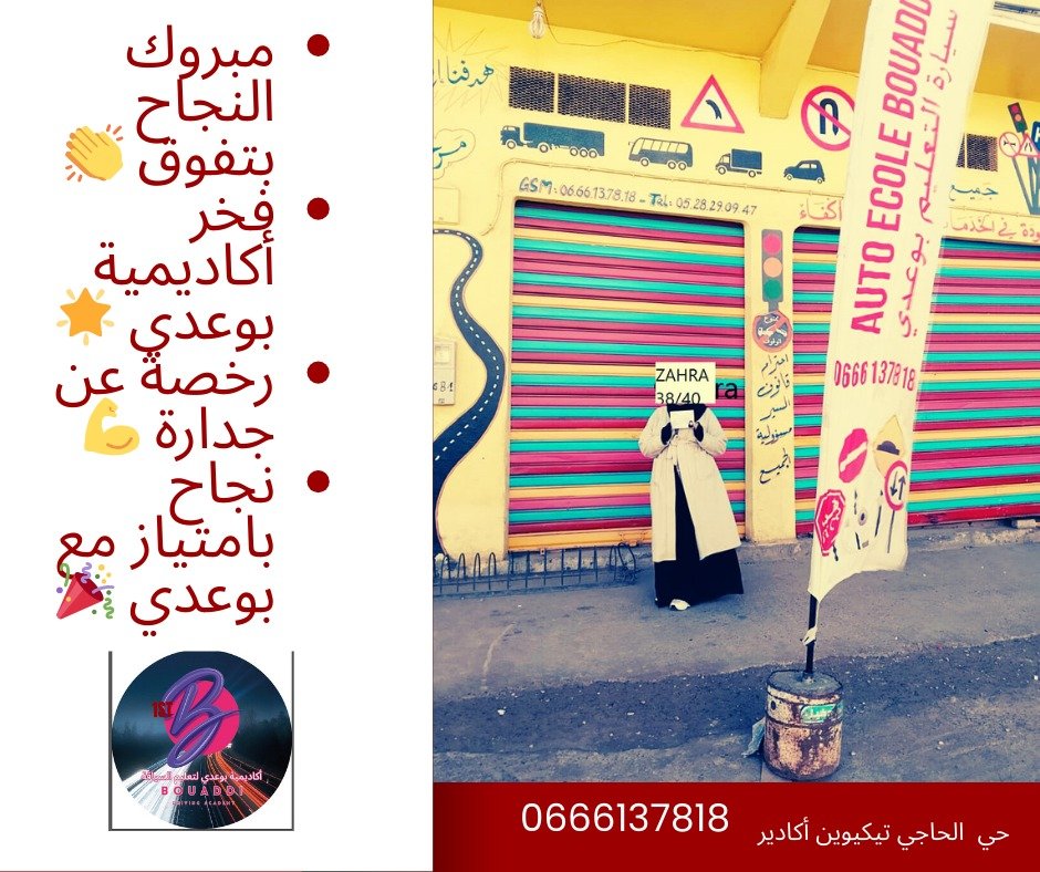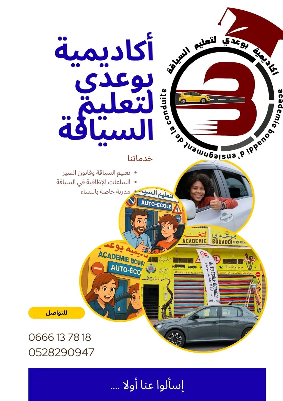 تقع أكاديمية بوادي لتعليم السياقة في حي حاجب تيكوين بأكادير، وهي مؤسسة ملتزمة بضمان نجاحكم. تأسست الأكاديمية في 5 يوليو 2024، وتتمتع بخبرة تمتد لعام كامل. نفخر بنسبة نجاح تصل إلى 99%، وقد دربنا حتى الآن 100 مرشح. تقدم الأكاديمية تدريبًا لجميع فئات رخص السياقة (أ، ب، ج، د، وEC) باللغات العربية والفرنسية والأمازيغية. يرافقكم فريقنا المكون من خبيرين في مركبة تعليمية. الهدف هو تعليمكم قواعد المرور والسلامة الطرقية. للتواصل، اتصلوا بنا على الرقم 0528290947 أو 0666137818.